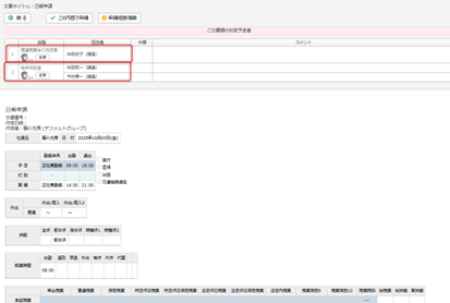 有給休暇の登録があり、なおかつ、退勤時刻は普通残業が発生する時間帯で登録されているので、以下のように判定者が自動追加されます。
