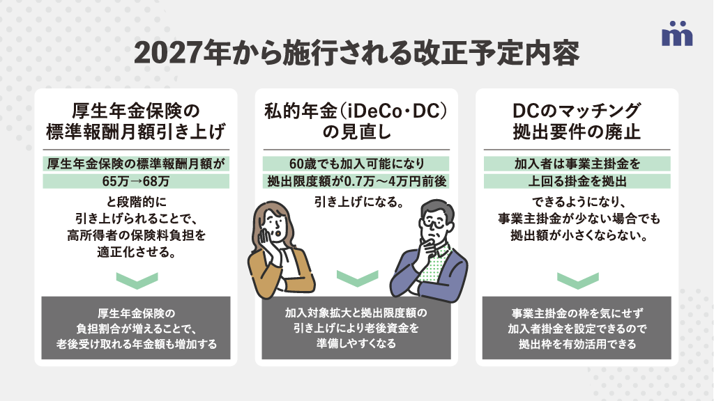 これらの改正は、世代間の公平性を確保しながら、誰もが安心して高齢期を迎えられる社会を目指すものです。