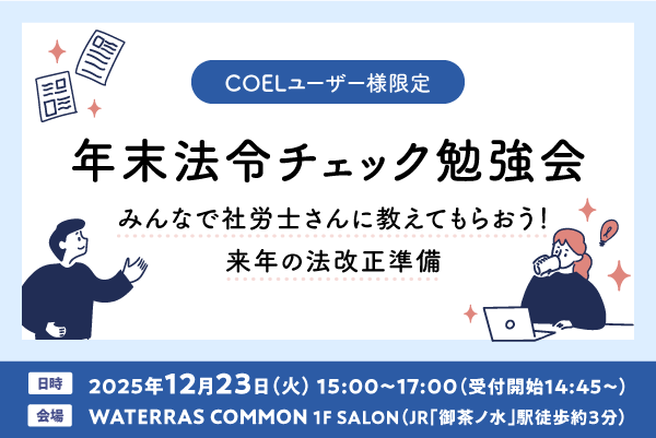 【COELユーザー様限定・参加無料】年末法令チェック勉強会 🎁 お土産付き!